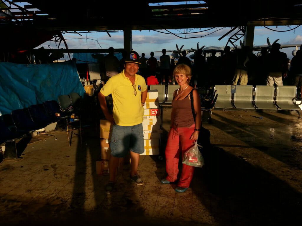 The American attaché stepped in, saying that Philippine-organized aid had to get priority. Before we knew it we were on the next flight, squatting on the floor of the plane with a lot of bags of canned food and a WHO lady who was going go to Tacloban to  ”assess the situation”.