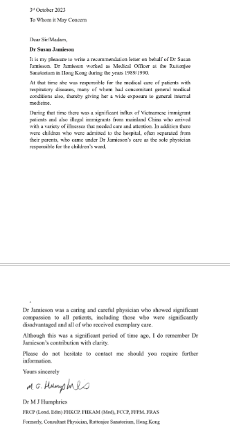 for which she has received awards. Even her first posting in Hong Kong in the 80’s involved working in a government TB hospital with displaced Vietnamese boat people who arrived as refugees.